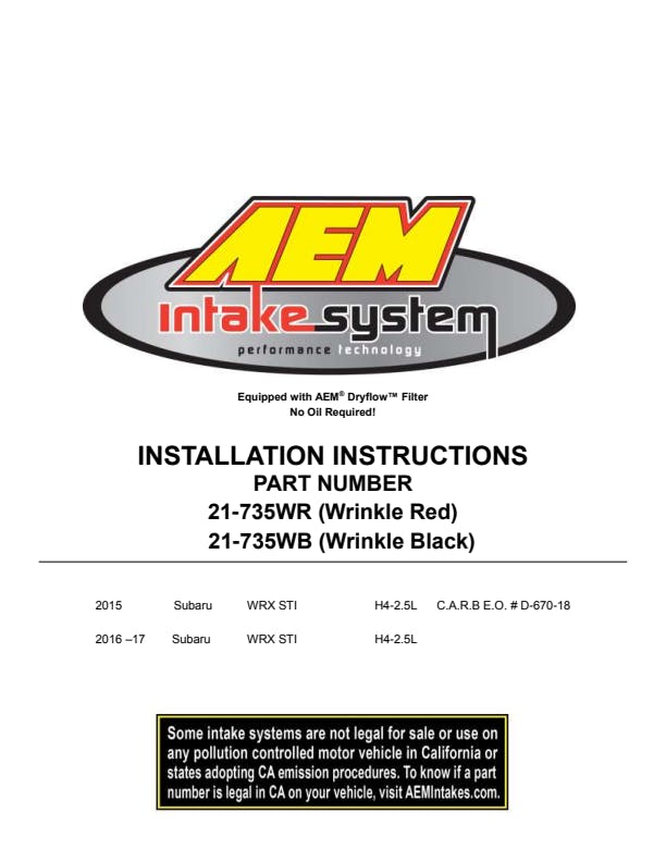 - AEM Lifetime Limited Warranty