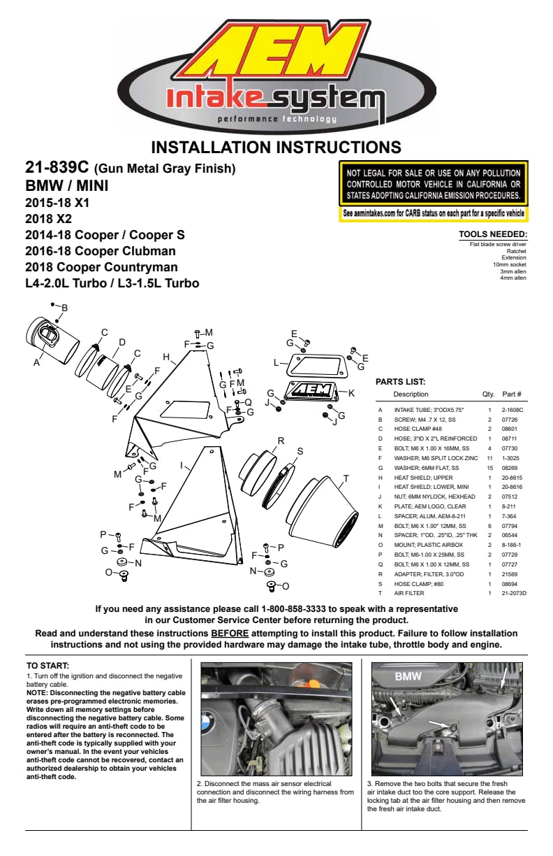 | Mass Air Flow Sensor Included |