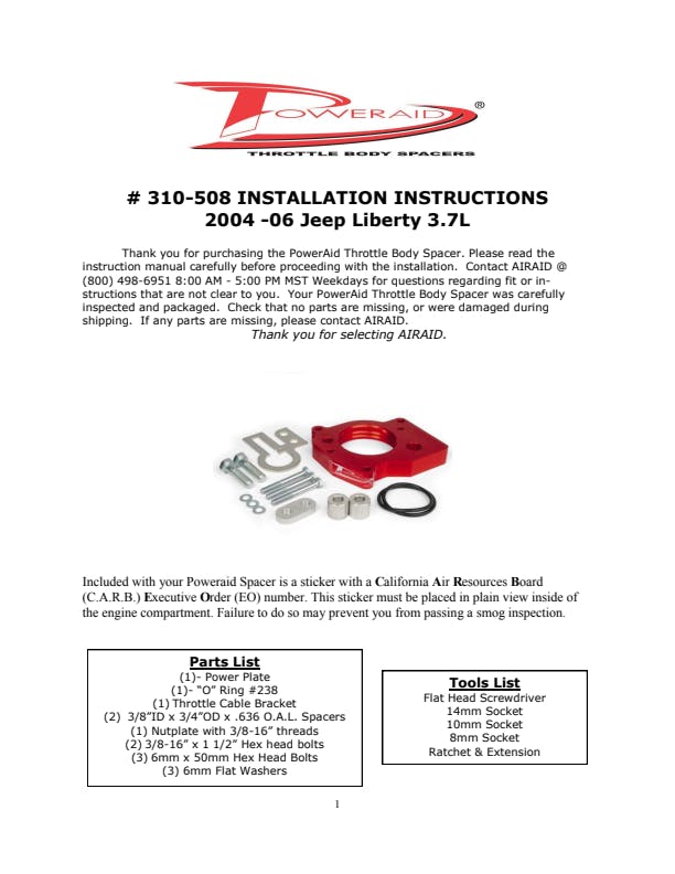 The AIRAID Throttle Body Spacer is designed to enhance mid-range torque using a patented Helix Bore which spins intake air going through the throttle body spacer. Includes mounting hardware.