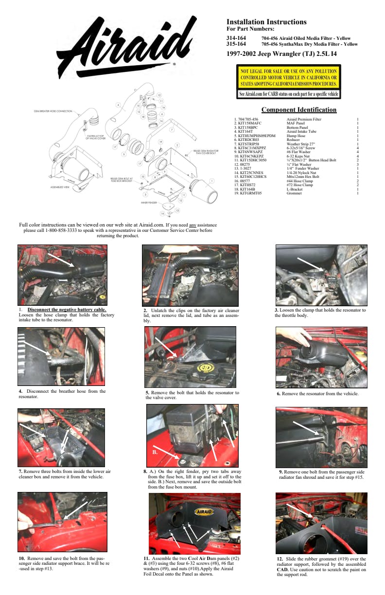 The AIRAID Cold Air Dam (CAD) Air Intake is engineered to give your engine larger amounts of cooler air to produce more horsepower and torque. The intake system retains the original location of the air filter but delivers a big boost with the addition of a huge open-element air inlet protected by Cold Air Dam panels that help to provide a steady, free-flowing supply of cooler outside air into your engine. The panels mount in the factory air box location and utilize any factory cold air inlet ducts that are present, while adding additional cold air passages to the filter. The panels also keep the filter isolated from the hot engine compartment air by sealing to the underside of the hood via blade-style weather stripping. This CAD system utilizes a replacement low-restriction intake tube. The 360-degree conical AIRAID premium air filter is washable and reusable, less restrictive than traditional paper, and assures superior filtration. The AIRAID Cold Air Dam Air Intake is easy to install with common hand tools.