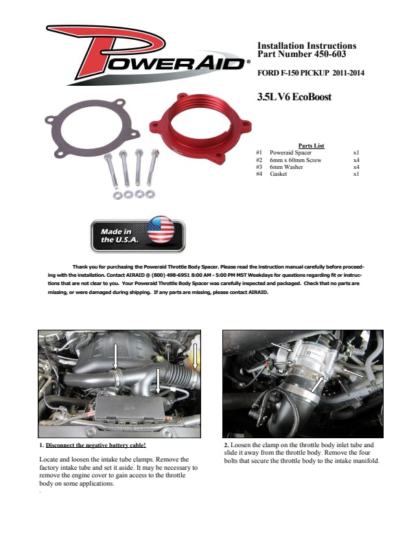 The AIRAID Throttle Body Spacer is designed to enhance mid-range torque using a patented Helix Bore which spins intake air going through the throttle body spacer. Includes mounting hardware.