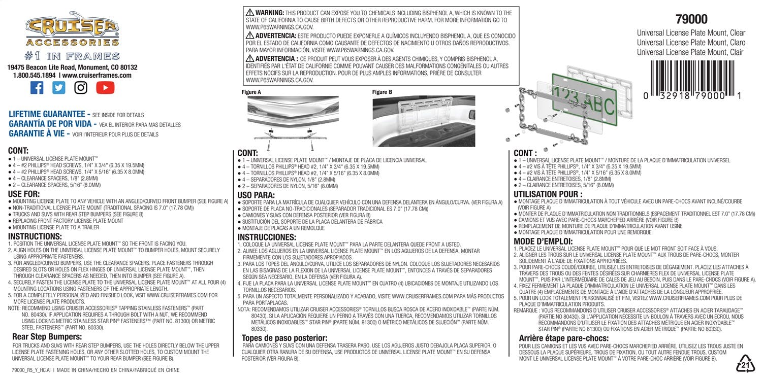 - Includes 1 Universal License Plate Mount And Hardware