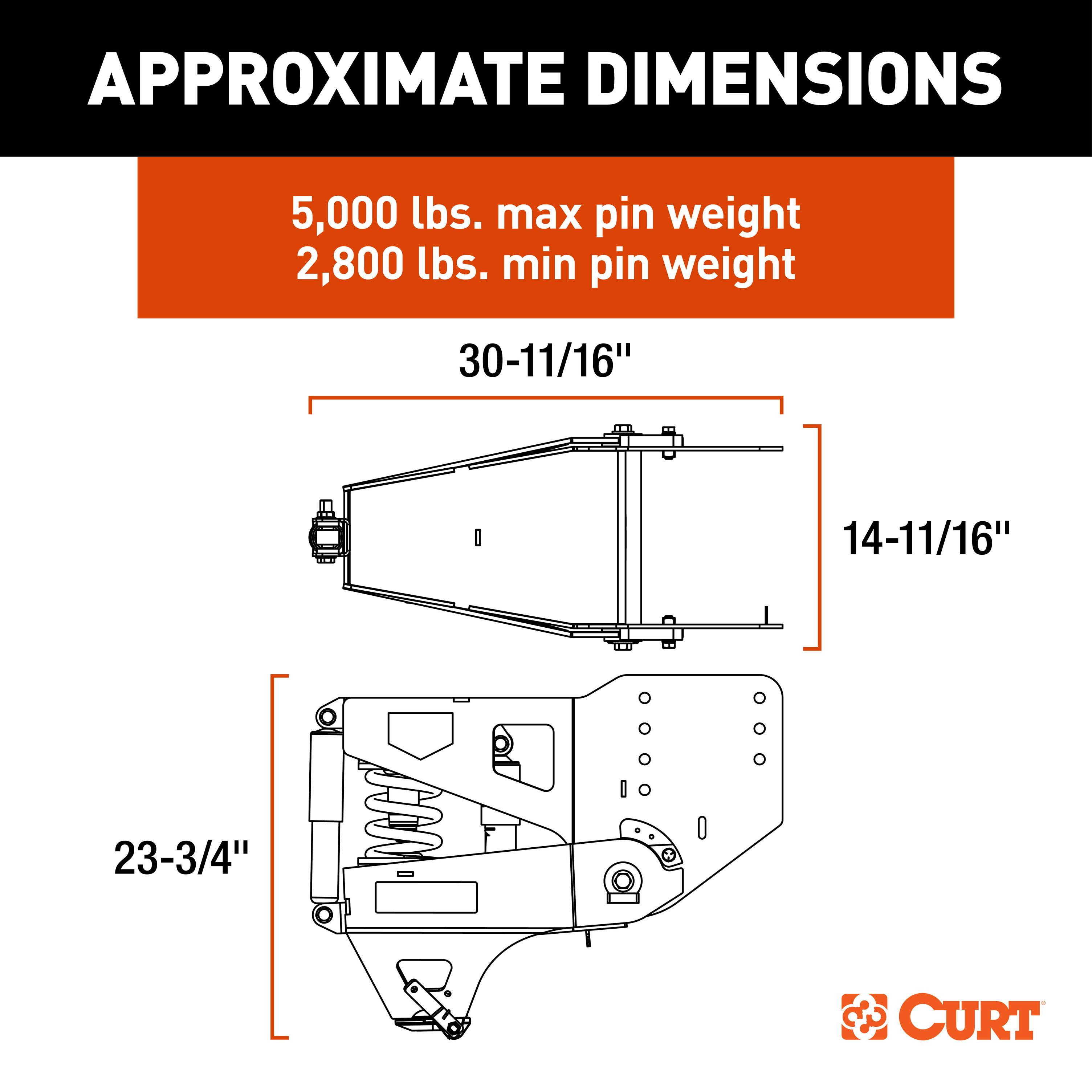 - 5,000 lb. max pin weight / 2,800 lb. min pin weight