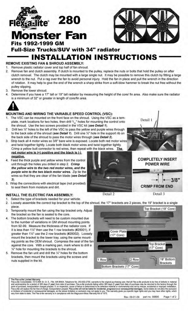 Flex-A-Lite 106899 Bracket kit #280 (19 core)
