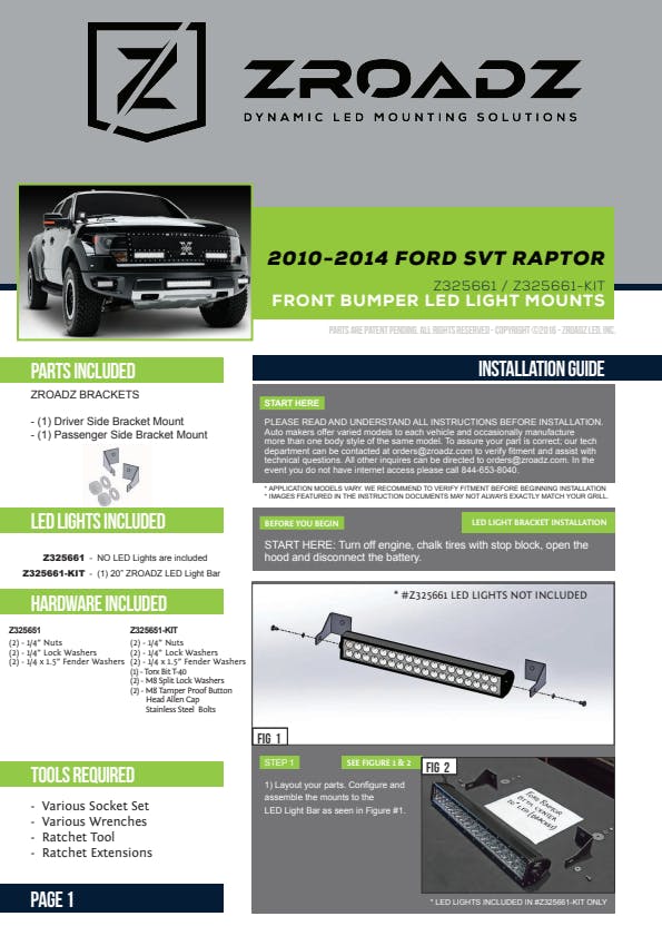 - Incl. [1] 20 Inch ZROADZ LED Straight Double Row Light Bar