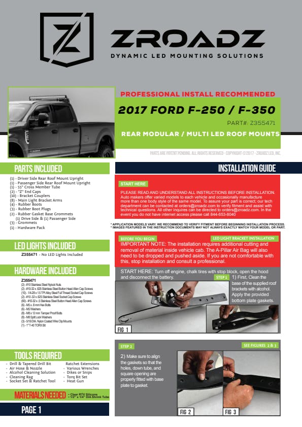 ZROADZ Modular LED Mounting System provides the ultimate in rear roof LED light configurability and versatility. Manufactured from 3/16 Inch thick heavy gauge mild steel, the brackets feature the ability to mount up to four LED light bars. Featuring patented power wire thru bolt mounting posts, EPDM rubber power wire boots and heavy duty rubber gaskets for a secure, watertight installation.